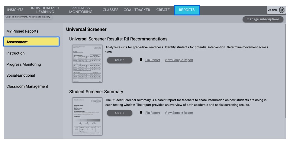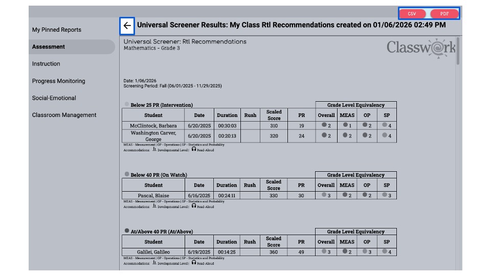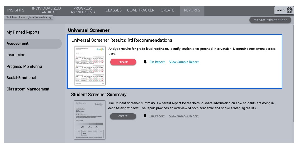 Generate the Universal Screener: RtI Recommendations Report