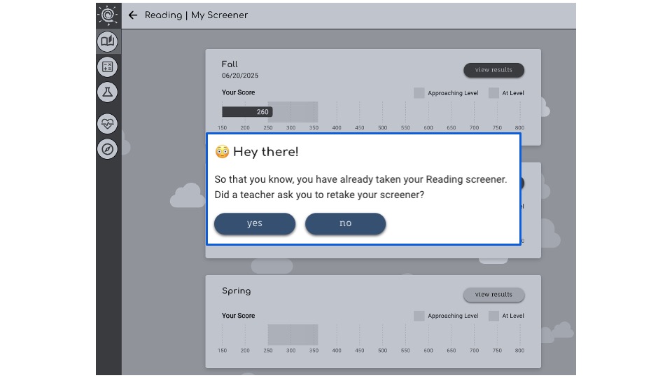 - Students should only retake a screener at their teacher’s direction
