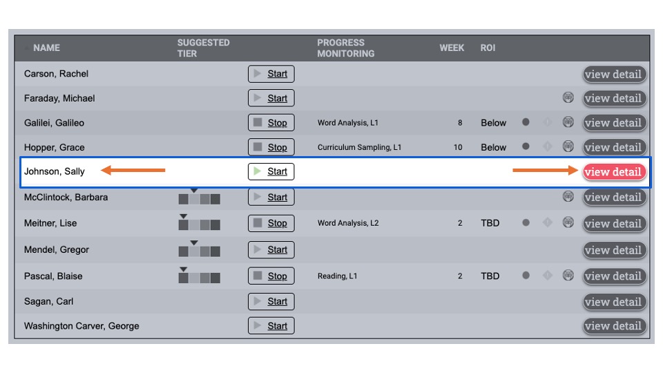 - To view NWEA MAP Growth test data in Classworks, click on the Student's Name or on "View Detail."