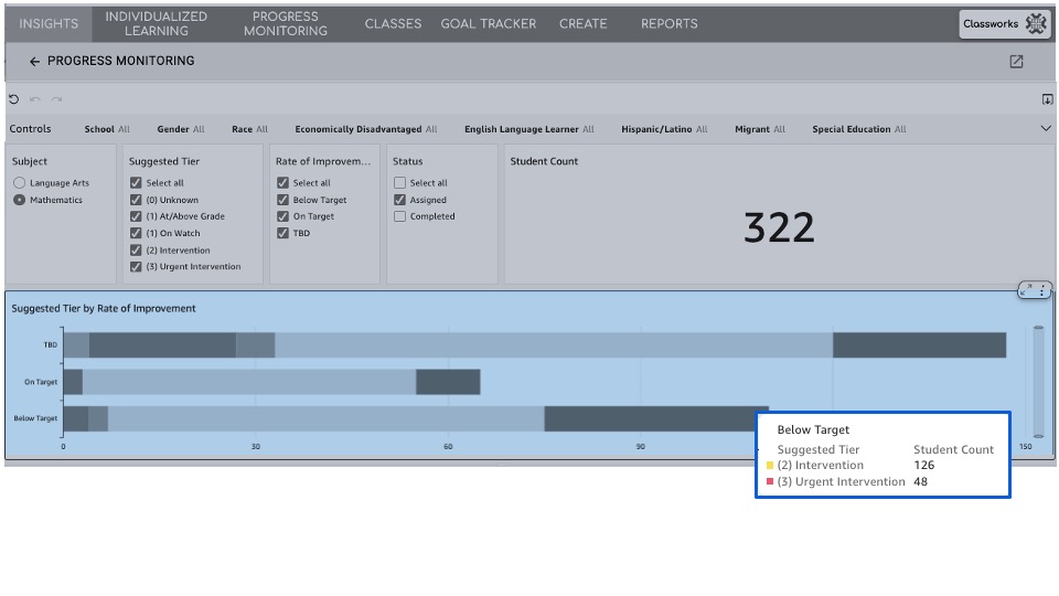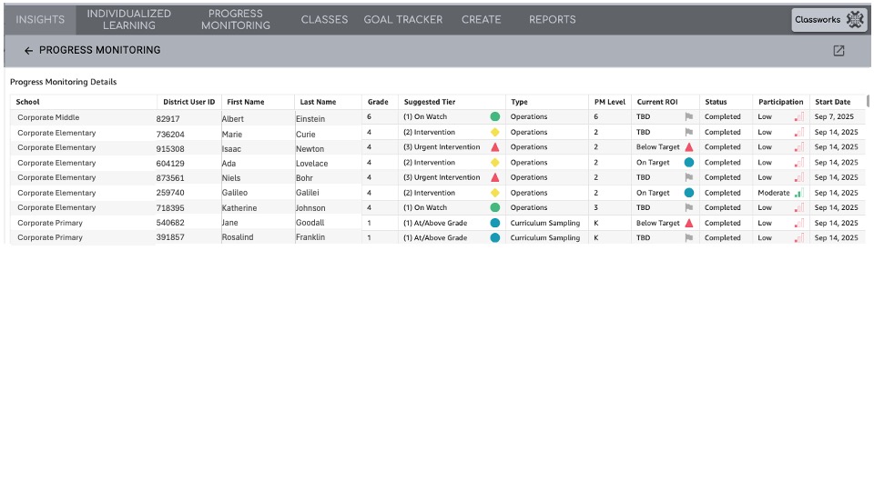 - Classworks recommends assigning Progress Monitoring for students receiving tier 2 and tier 3 support
