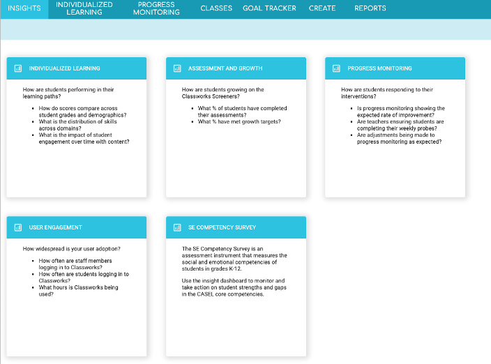 Insights Data Dashboards are available to building and district-level administrators