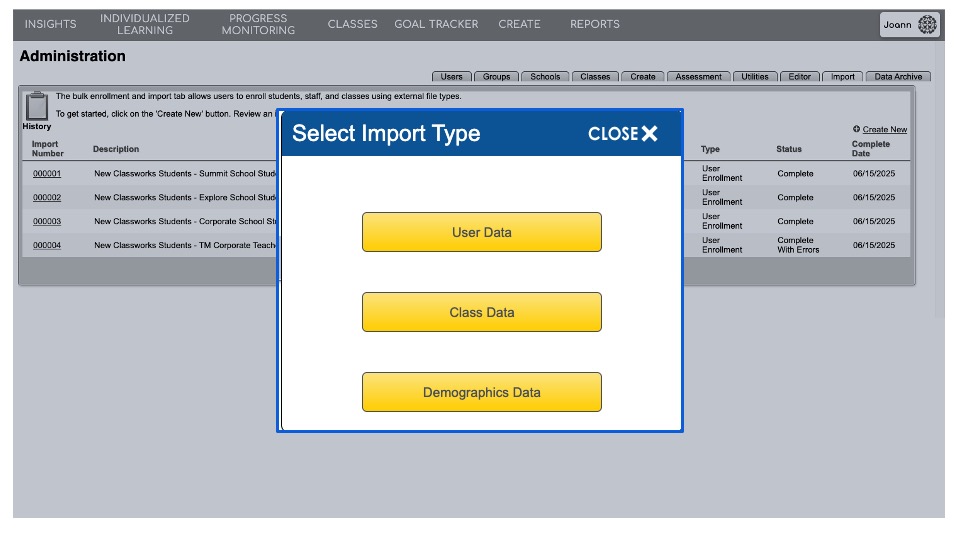 Only users with District Administrative rights within Classworks can perform the following steps.