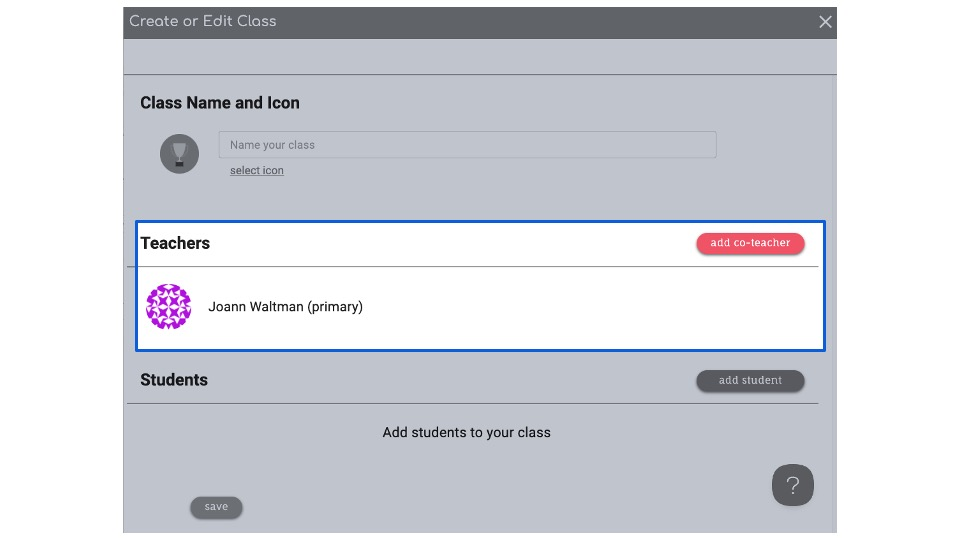On the Create or Edit class screen, locate "Add Co-Teacher" and click