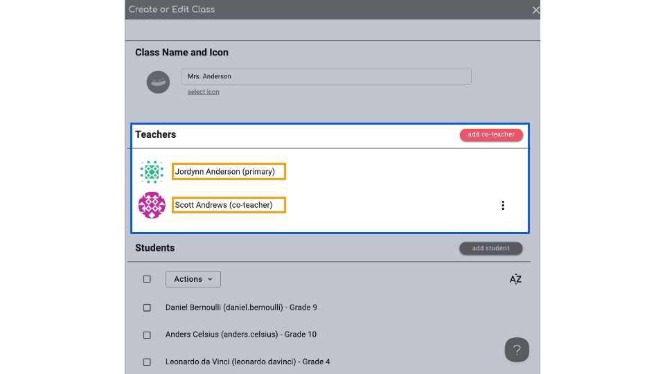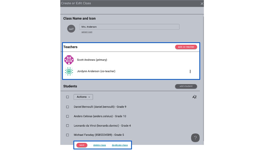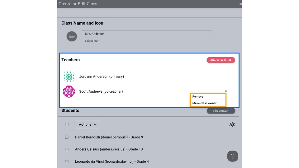 Change the Primary Teacher or Class Owner (Teacher of Record) from the Create and Edit Class screen