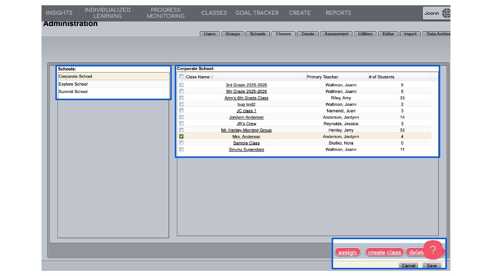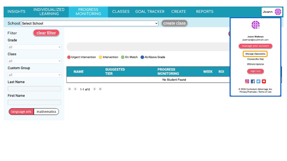 Navigate to the Edit Class Menu from the Progress Monitoring, Individualized Learning, or Classes screen