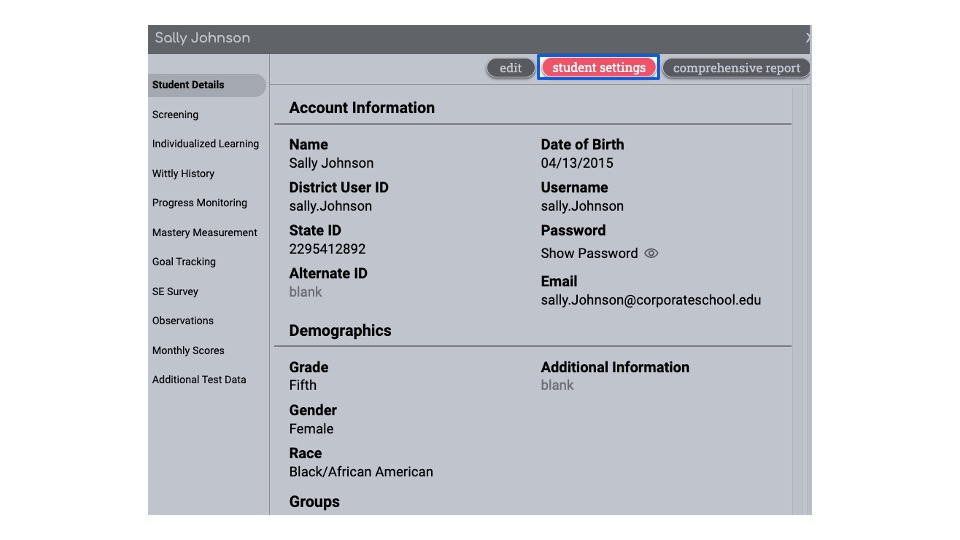 Click Student Settings at the top of the student's detail screen