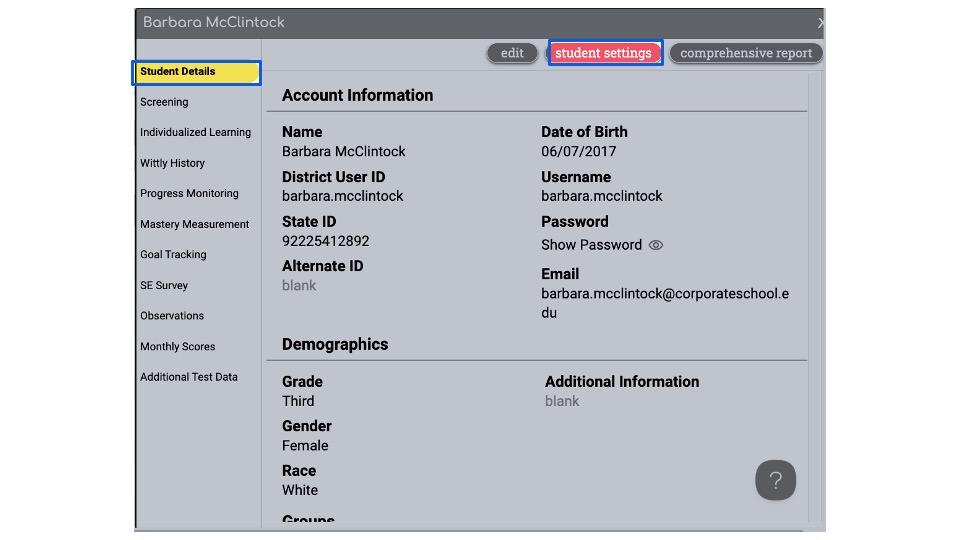 Navigate to the Student Settings portion of the Student Detail screen