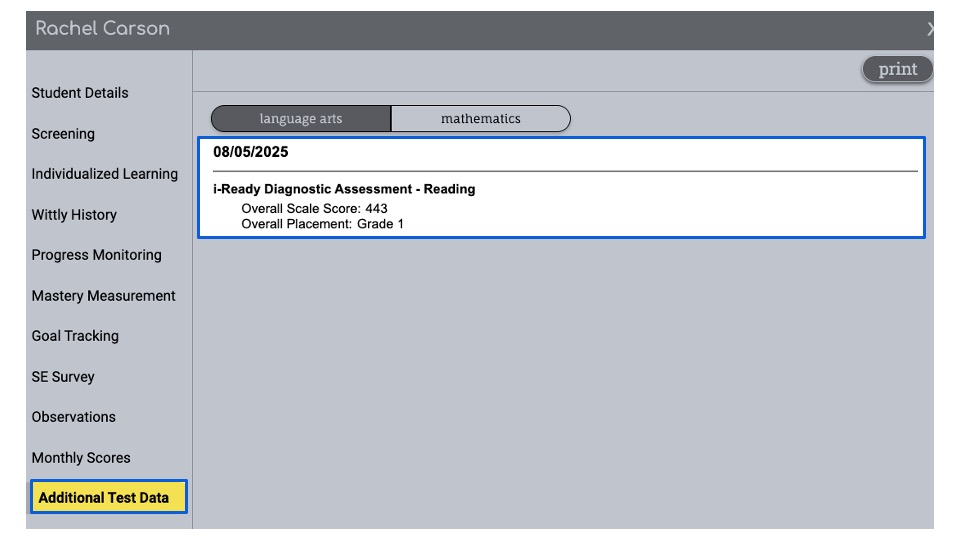 If the student has taken the Classworks Universal Screener (or an assessment partner screener), the student's CBM level is automatically recommended based on those results.