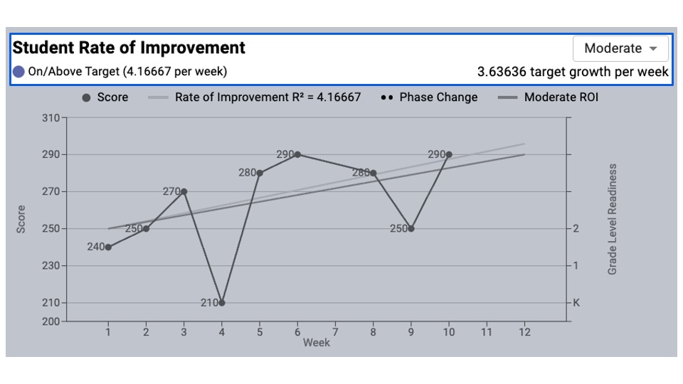 - Moderate - The goal is the target score for the next assessment window (Make 18 weeks of growth in 12 weeks)