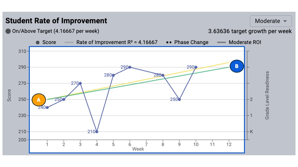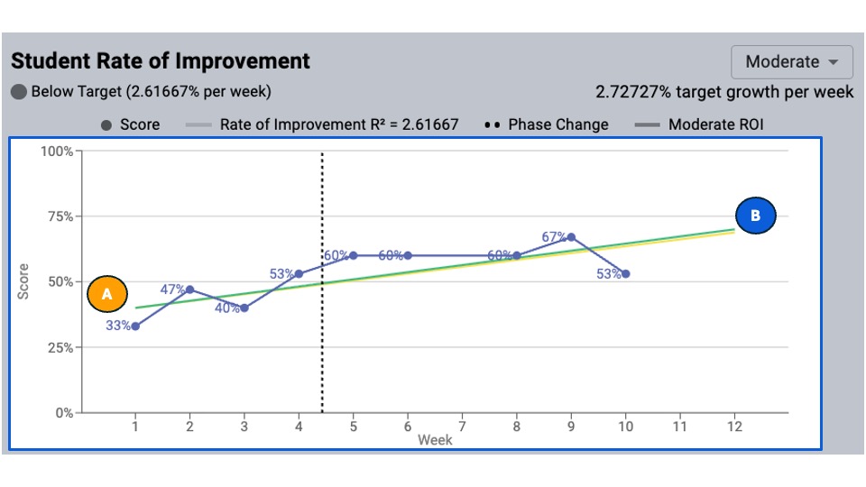 Target Rate of Improvement: The goal selected by the teacher is shown by point B on the graph above.